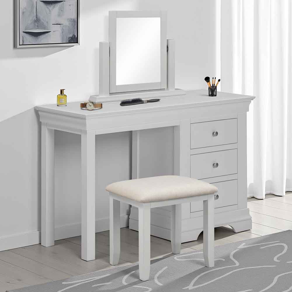 Cavara Wooden Dressing Table Set With 3 Drawers In Pebble Grey