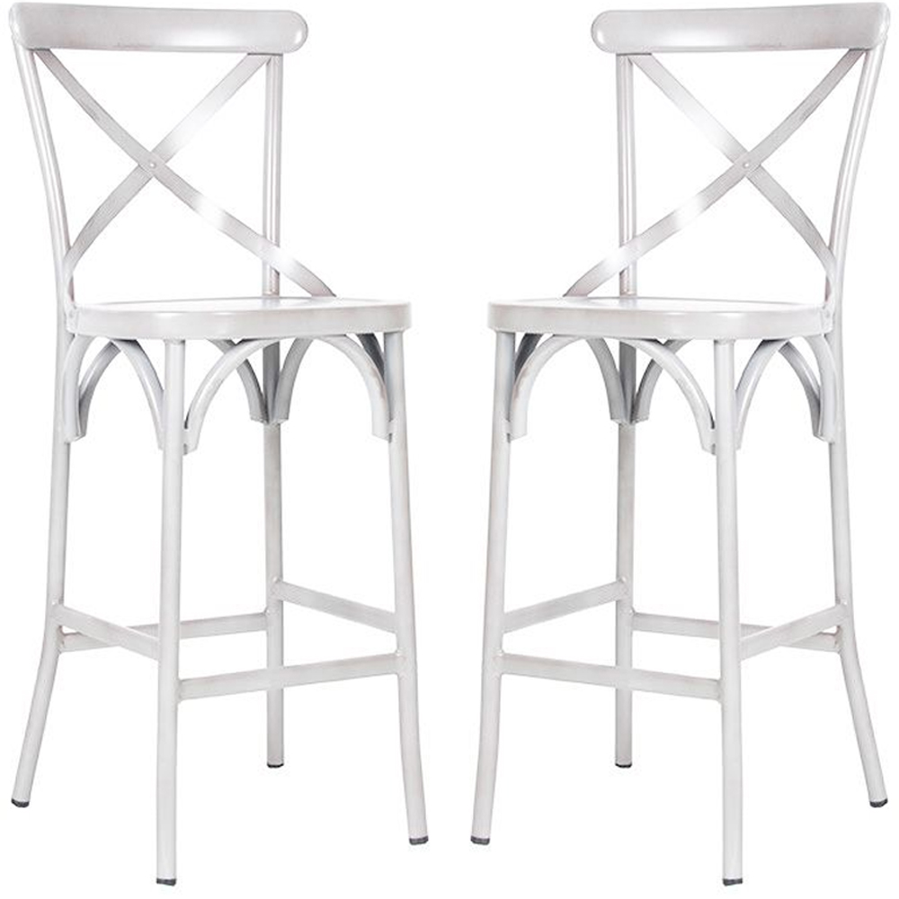 Cayuga Vintage White Aluminium Stackable Bar Chair In Pair