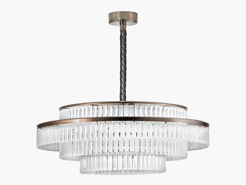 LED etched glass pendant lamp with crystals