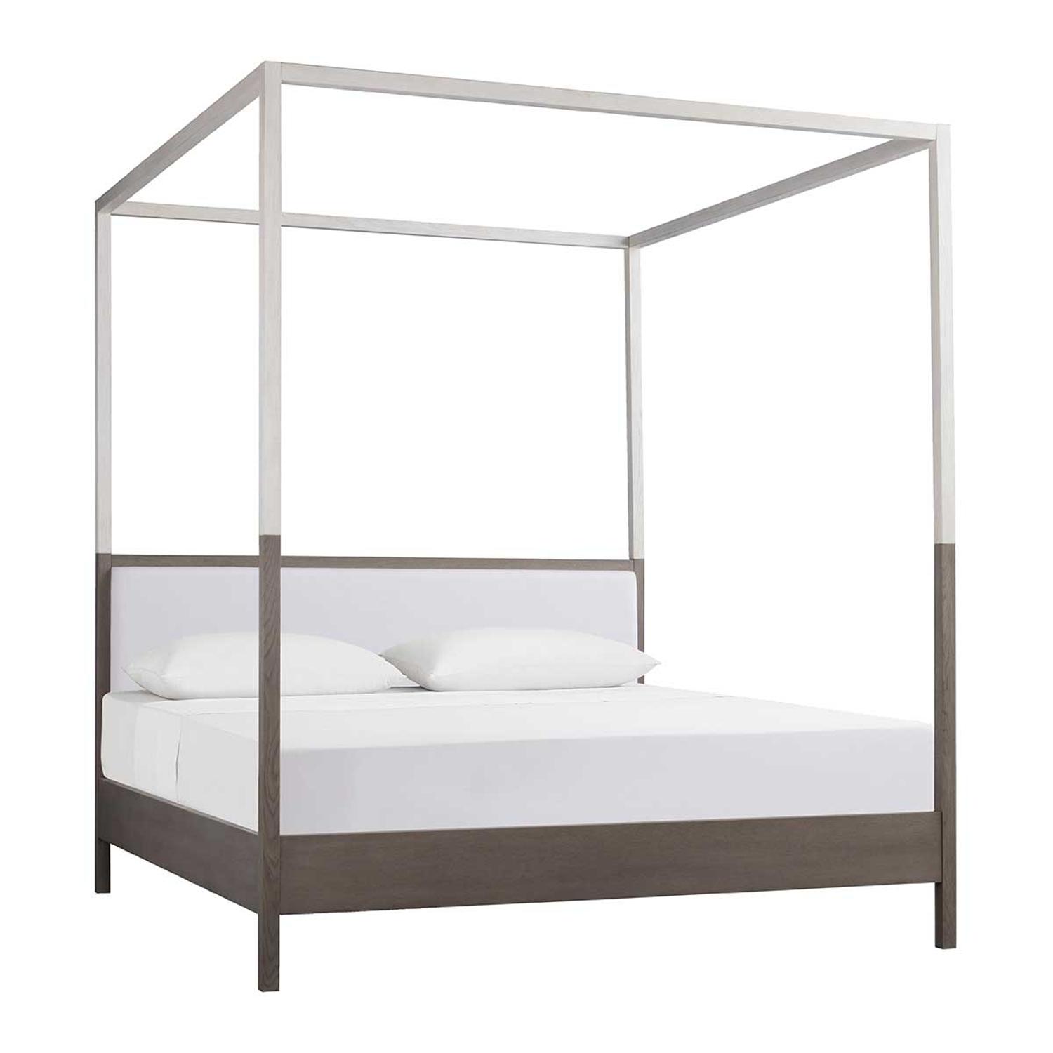 A contemporary take on a 4-poster canopy bed, Chelsea features a warm white lacquer upper half and smoked oak lower half to create a two tone frame that is beautifully complimented with a linen upholstered headboard. Chelsea Poster Bed, Bed, UK King - Andrew Martin