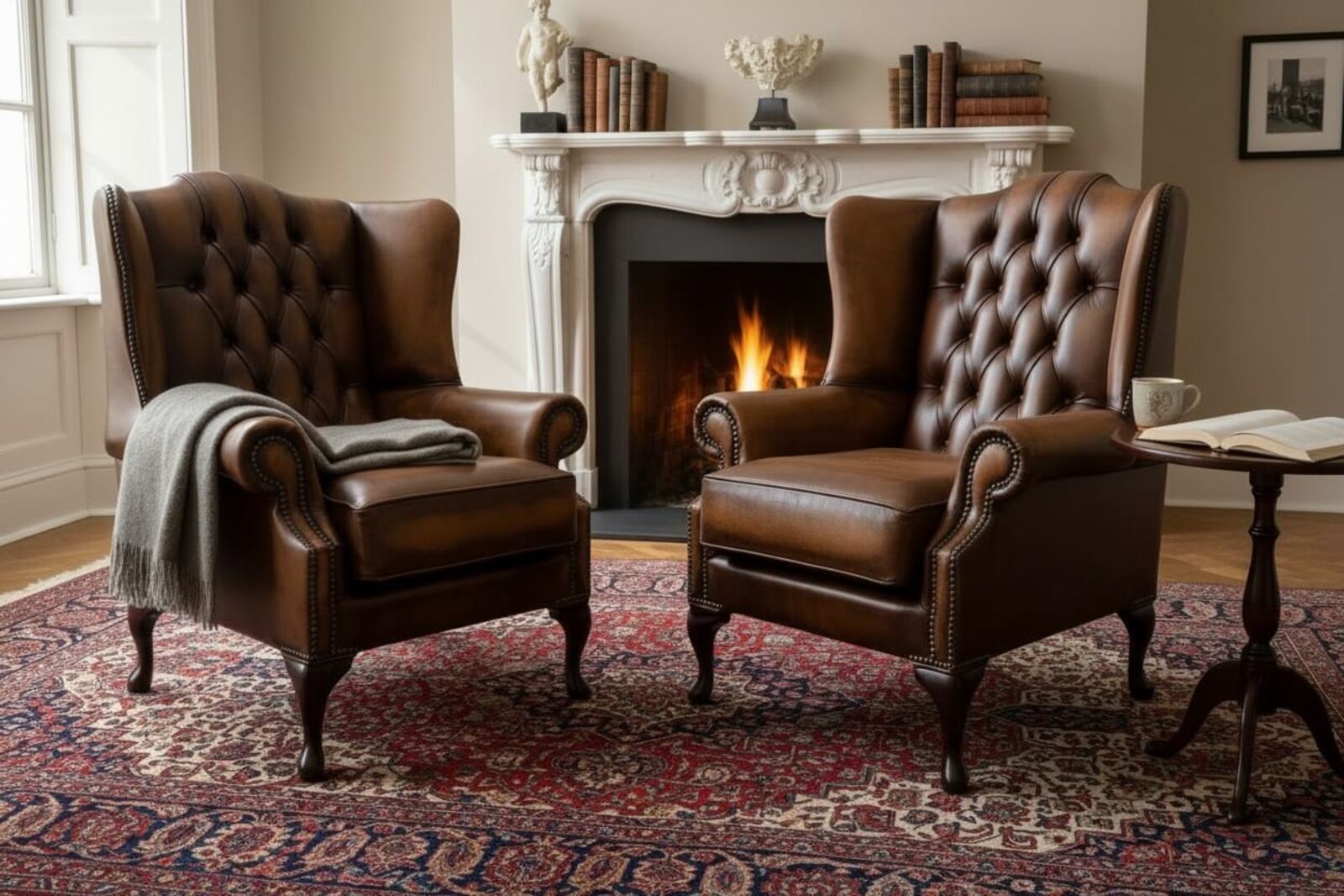We love this Chesterfield 2 X Mallory Wing Chair Leather Sofa Suite Offer Antique Tan, and can’t believe we lived without it for so long!