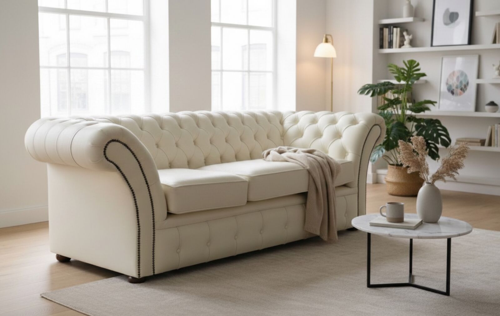 We love sophisticated living, and think that this Chesterfield Balmoral 3 Seater Sofa Settee Cottonseed Leather really hits the mark!