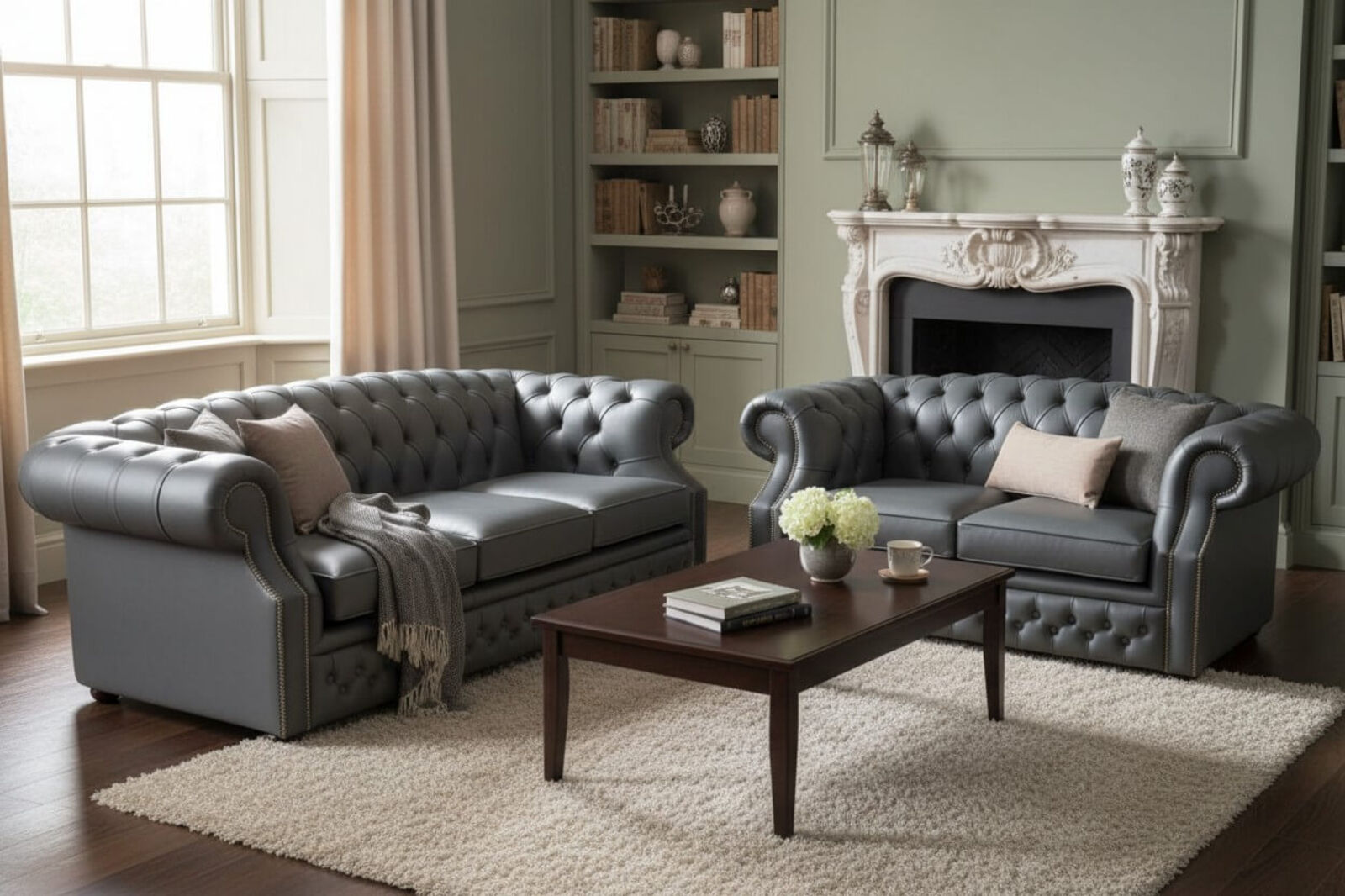 Our review of the Chesterfield Buckingham 3 2 Seater Vele Charcoal Grey Leather Sofa Suite Offer