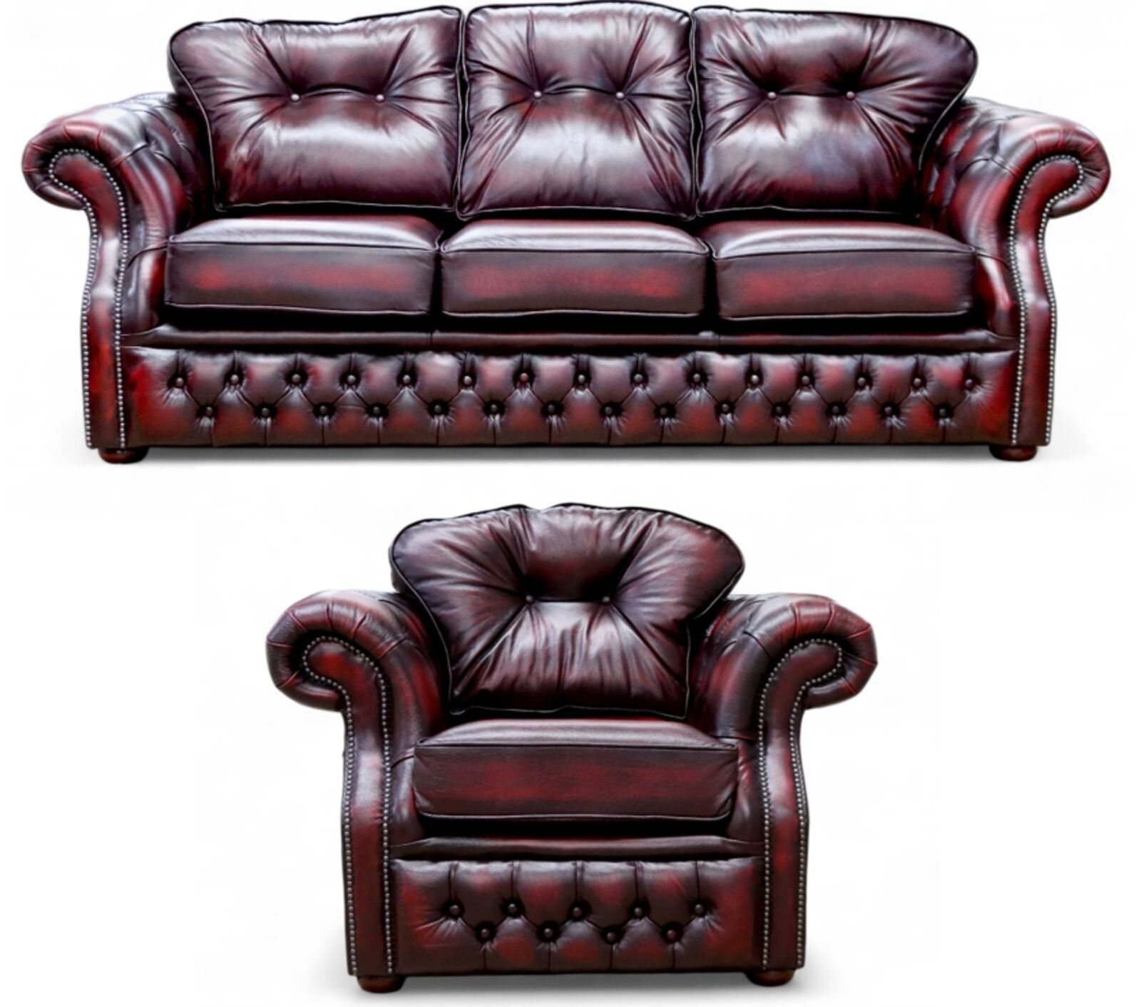 Chesterfield Era 3 1 Antique Oxblood Leather Sofa Suite