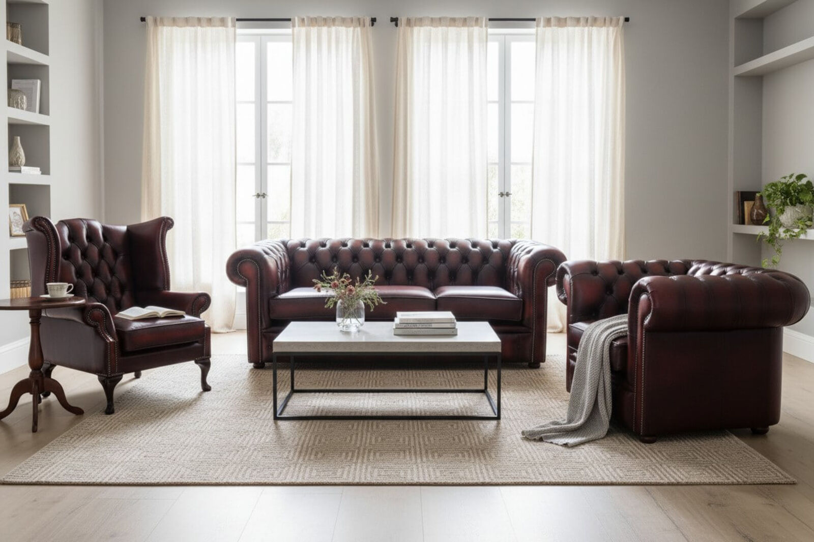 Chesterfield Leather Collection 3 Seater Sofa, Wing Chair & Club Chair Antique Oxblood Finish | Timeless Elegance & Superior Craftsmanship Elevate your living space with the Chesterfield Leather Collection, featuring a 3-seater sofa, wing chair, and club chair in a classic antique oxblood finish. Handcrafted to perfection, this collection embodies traditional British sophistication, making it a stunning focal point for any home or office. Key Features: - Premium Genuine Leather Luxuriously soft, durable, and ages beautifully over time. - Iconic Deep Button Tufting Classic Chesterfield styling that exudes elegance. - Rolled Arms & Nailhead Trim Timeless details that enhance the vintage appeal. - Solid Hardwood Frame Built for durability and long-lasting comfort. - Plush Cushioned Seating Offers exceptional support for a luxurious lounging experience. Perfect for homes, offices, lounges, and study rooms, this exquisite Chesterfield collection brings heritage, charm, and…