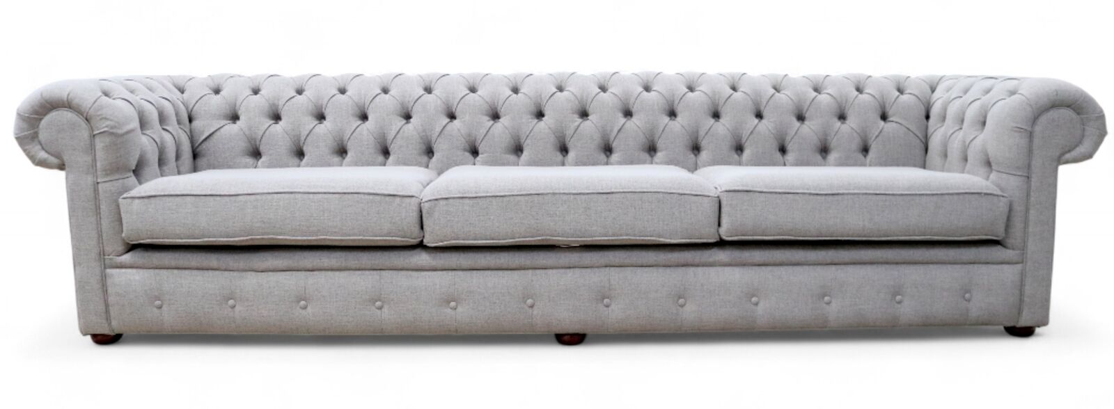 HANDCRAFTED IN ENGLAND The Chesterfield Classic Sofa. The Chesterfield Fabric Sofa with it's unique Low Back Style, Deep Buttoned Arms and Back complemented with a Buttoned Front Border. The Scroll Fronted arms on the Chesterfield Leather Sofa are attractively embellished with lines of individual stud nails. An undoubted winner in any room from the cottage to the boardroom. A classic of its kind ;Traditional Vintage British Style. Width : 300cm x Depth : 89cm x Height : 75cm Seat Height : 43cm Seat Depth: 55cm 2-Man-delivery tc(1): We understand that purchasing furniture is a household decision. Therefore in order to make this stress free, we offer all our customers: - FREE swatches to help decide on colours - FREE impartial advice on the suitability of products - Manufacture Bespoke Items to fit the space you have available Your Payment Options - Paying by Debit Or Credit Card Or Paypal - Pay For Your Order In Full Upfront OR - Pay a 50% Deposit At Checkout And Pay The…