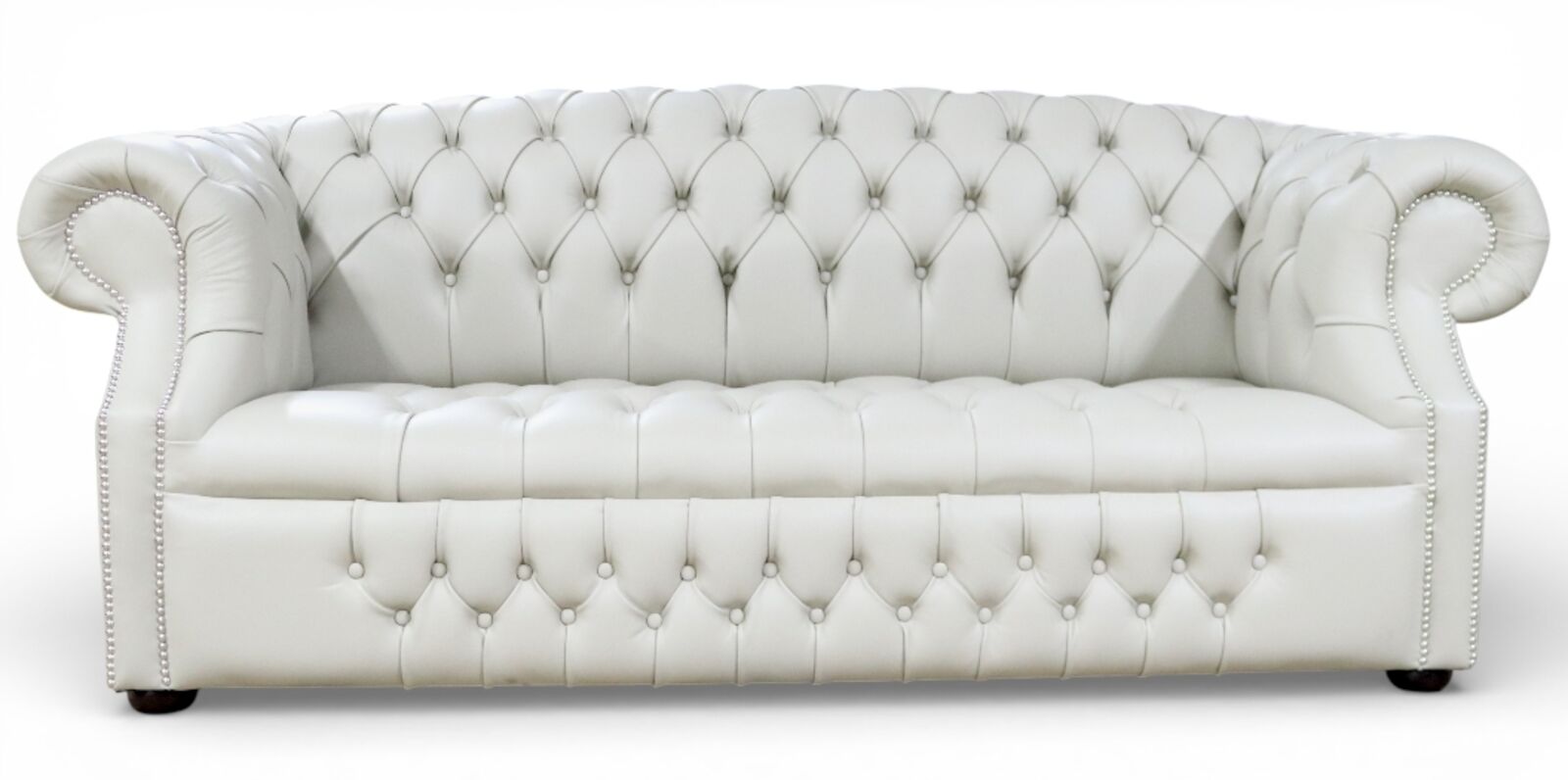HANDCRAFTED IN ENGLAND The Chesterfield Windsor Classic Sofa. The Chesterfield Windsor Leather Sofa with it's unique Raised Back, Deep Buttoned Arms and Back complemented with a Double Buttoned Front Border. The Scroll Fronted arms on the Chesterfield Leather Sofa are attractively embellished with lines of individual stud nails. An undoubted winner in any room from the cottage to the boardroom. A classic of its kind ;Traditional Vintage British Style. - Handmade in Premium Leather - Non Tropical Screwed and glued hardwood frame made in house - Upholstered and buttoned by craftsmen - Real wood Bunfeet - Hand studded - From construction of the frame to filling in the cushions all is completed in house. - Individual seating options (Soft, Medium, Firm) - Payment Option 50% Deposit Rest of Balance On Delivery - FREE Swatch Service - 12 Month Manufacturers Guarantee - 10 Year Manufacture Guarantee on Framework - Manufactured In England - Worldwide delivery Available 3…