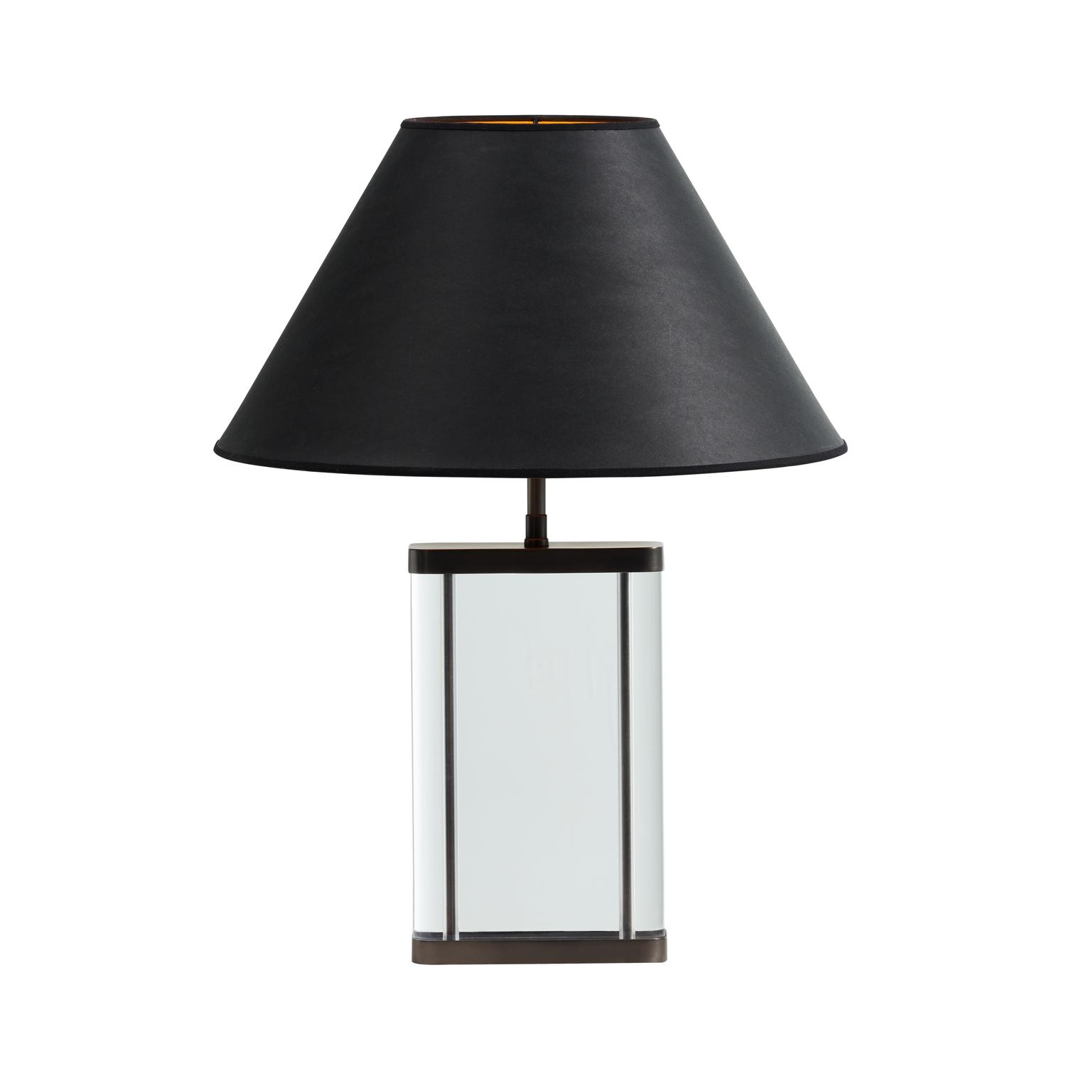 Clarity and contrast come together in the Clarus table lamp. A rectangular column of crystal-clear acrylic is framed in burnished nickel edging, softly distressed for a subtly aged finish. Clarus Table Lamp, Light, Black - Andrew Martin