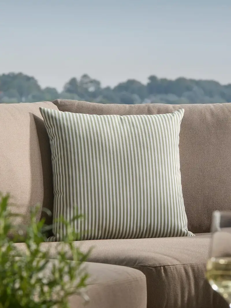 Bring a touch of refined charm to your outdoor space with our Classic Square Outdoor Cushion in olive stripe. The soft green tones and narrow stripe design offer a timeless, tailored look that feels effortlessly elegant.Perfect for pairing with neutral seating or mixing with block-coloured cushions, it offers a subtle nod to classic garden style with a modern, elevated finish.