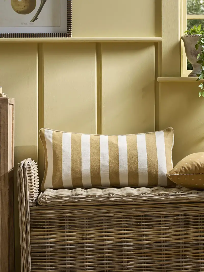 Perfect as the finishing touch to your bed or to add some comfort to a storage bench, this cushion offers a bright pop of colour in your home.Crafted from cotton, the neutral stripes contrast with warming mustard yellow stripes work to create a timeless pattern that works in a variety of interior styles.