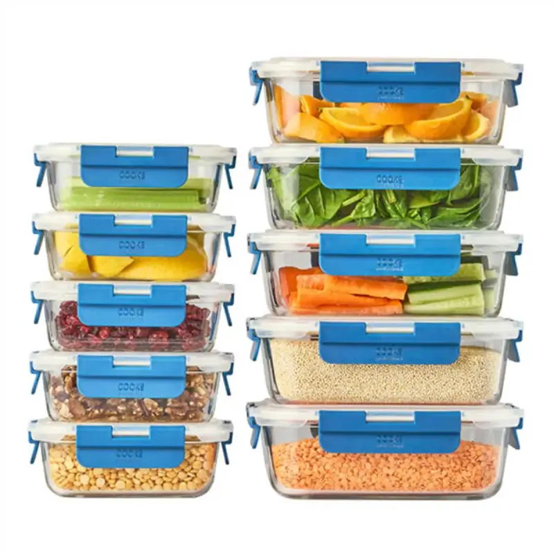 Cooks Professional Set Of 10 Glass Food Storage Jars With Air-tight Plastic Lids - Fridge Freezer Amp Oven Safe Meal Prep Containers Clear
