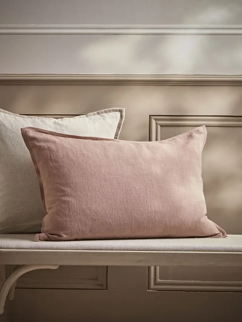 Elegant and simple, this cushion creates the perfect cosy spot.In a luxurious blend of linen and cotton, this cushion cover is sumptuously soft for the most comfortable spot to recoup and relax.In pretty dusky pink tones, this simple cushion cover elevates and enhances a sofa or armchair perfectly. This cushion cover is suitable for a 40cm x 60cm cushion pad which is available separately.