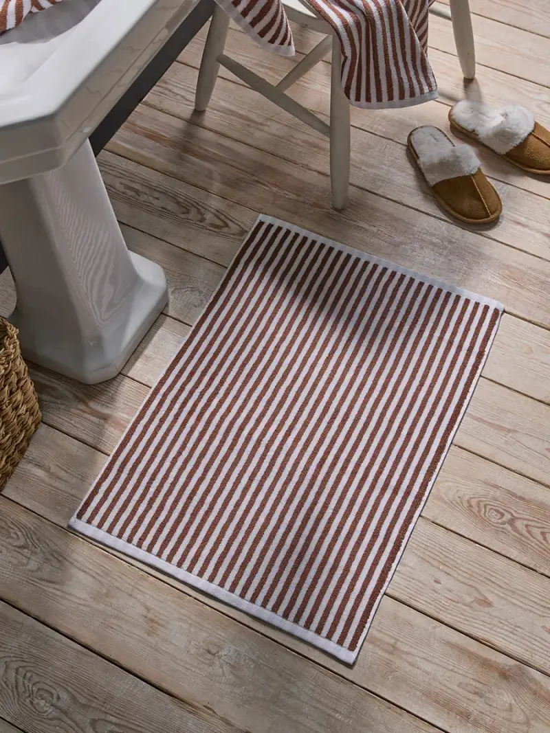 For cosy toes, the moment you step out of the shower or bath, place our cotton striped bath mat on the floor and embrace the warmth it has to offer.Timeless stripes in warming maple tones offer the perfect finishing touch to your bathroom, which is sure to look beautiful in a variety of interior schemes.