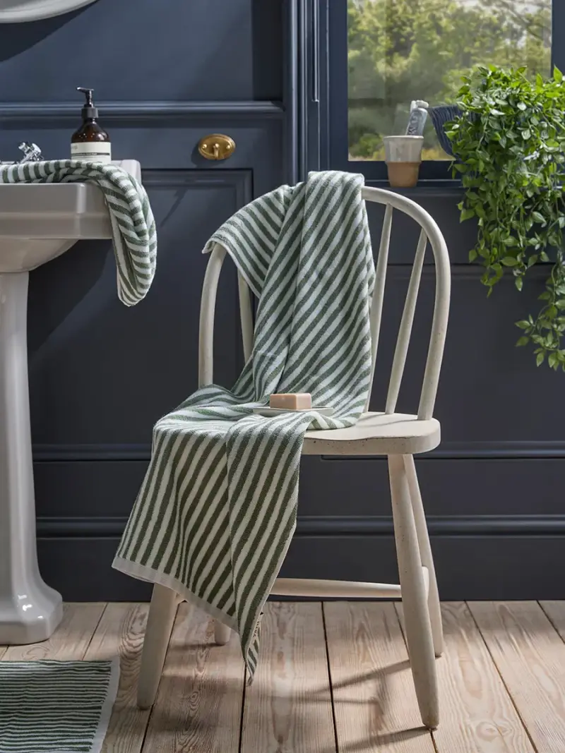 Wrap yourself in the cosy touch of our cotton striped bath towel.With timeless green stripes, this towel works in a variety of bathroom styles and creates a beautiful finishing touch to your towel rail.