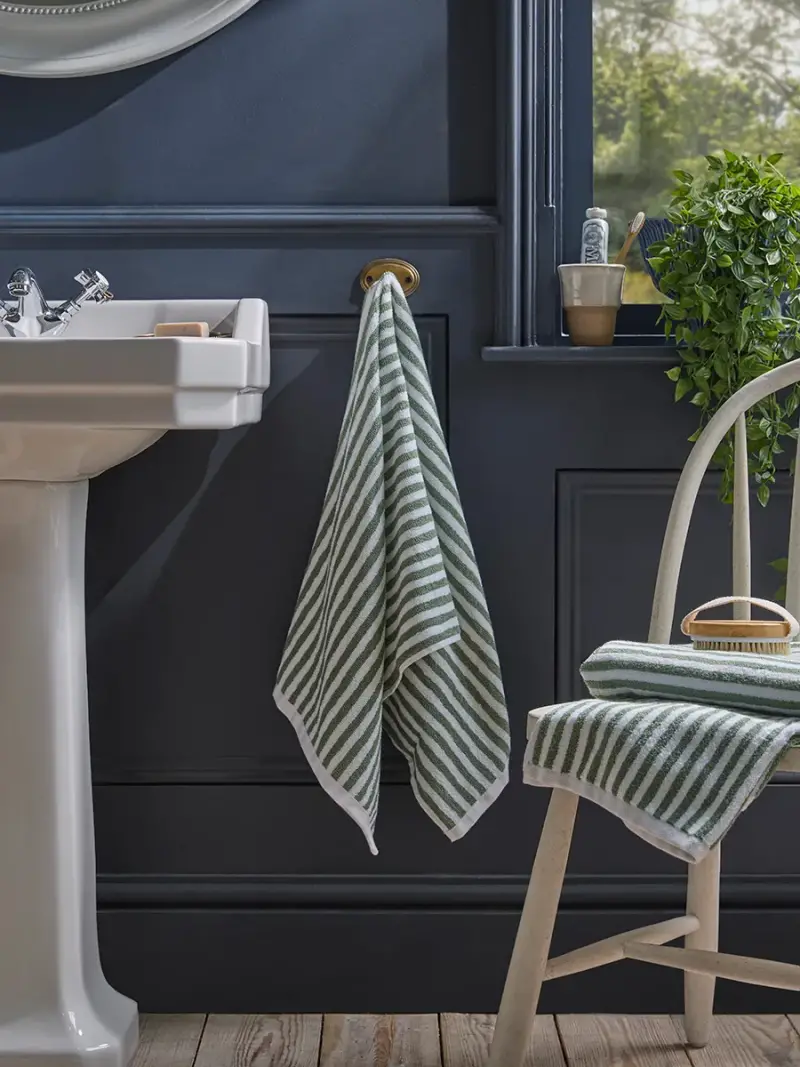 Hanging beautifully on your towel holder, our cotton striped hand towel creates the softest place for you to dry your hands.With timeless green stripes, this hand towel offers a gorgeous finishing touch to your bathroom.