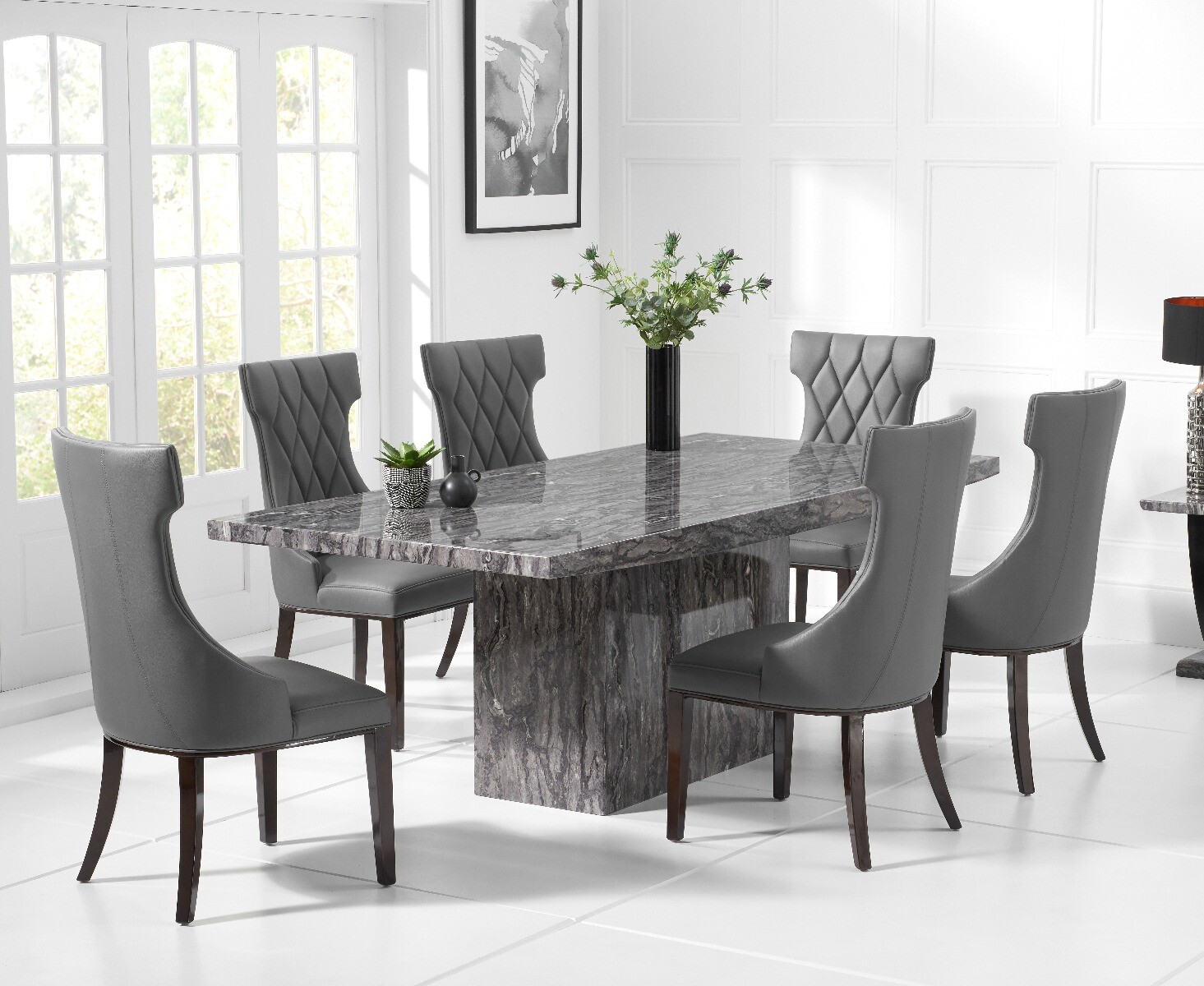 Our review of the Crema 160cm Grey Marble Dining Table With 6 Grey Sophia Chairs