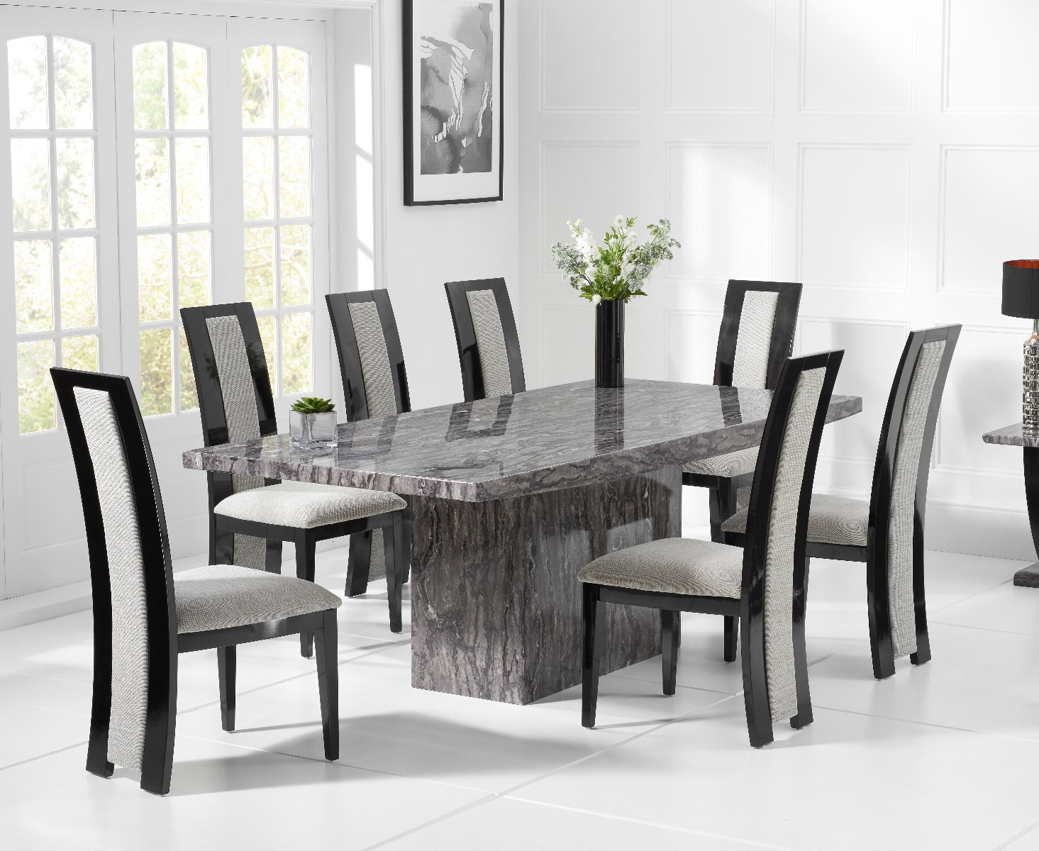 Our review of the Crema 180cm Grey Marble Dining Table With 6 Brown Novara Chairs