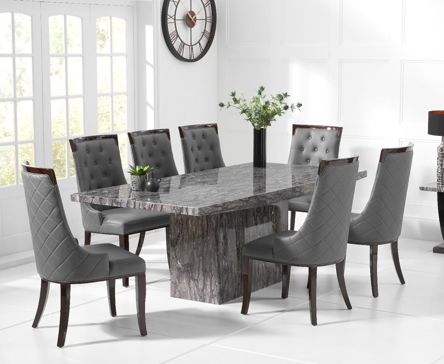 Crema 180cm Grey Marble Dining Table With 6 Grey Francesca Chairs