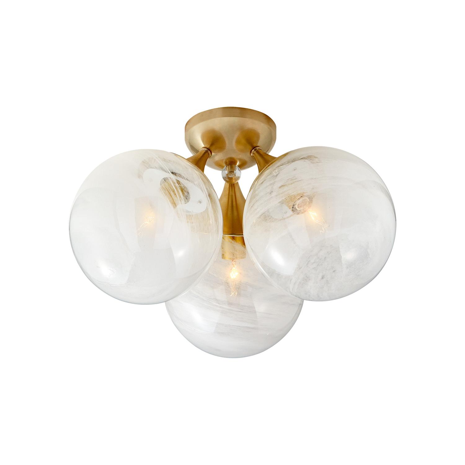 This flush mount combining three globes puts a contemporary spin on a traditional style. Its white glass globes illuminates with a beautiful glow. Cristol Flush Light Brass, Flush Mount, Hand-Rubbed Antique Brass - Andrew Martin