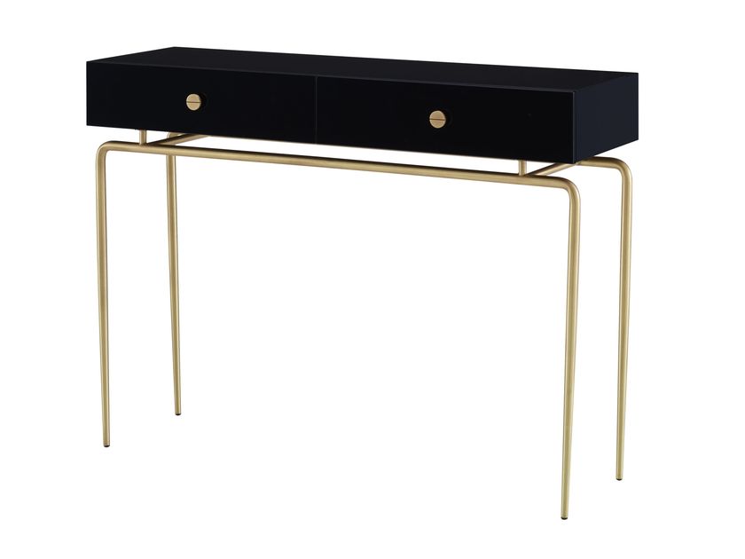 Rectangular steel and wood console table with drawers