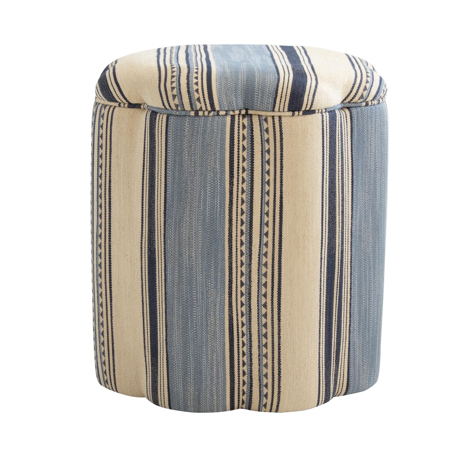 A classic with a twist, our Daisy ottoman is defined by its scalloped edge and dainty size. Daisy Ottoman Las Salinas 8, Chair, Blue - Andrew Martin Cotton