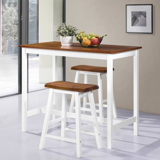 Darla Wooden Bar Table With 2 Bar Stools In Brown And White