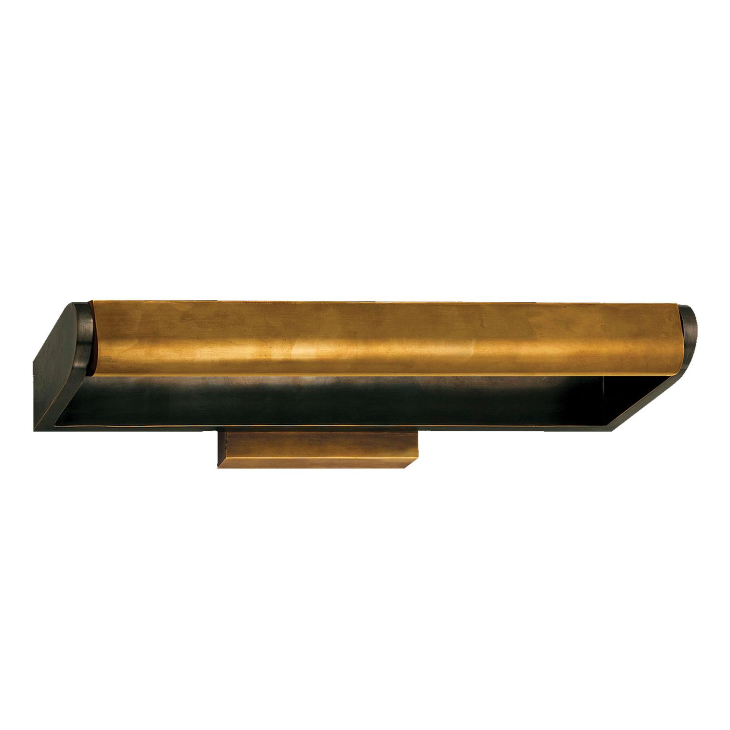 A smart and sleek picture light in bronze with antique brass shade, which pivots to effectively illuminate your artwork. Crafted by iconic designer Thomas O'Brien, David suits traditional and contemporary interiors alike and is perfect for using in multiples. David Large Picture Light Bronze, Picture Light, Large, Bronze & Brass Shade - Andrew Martin