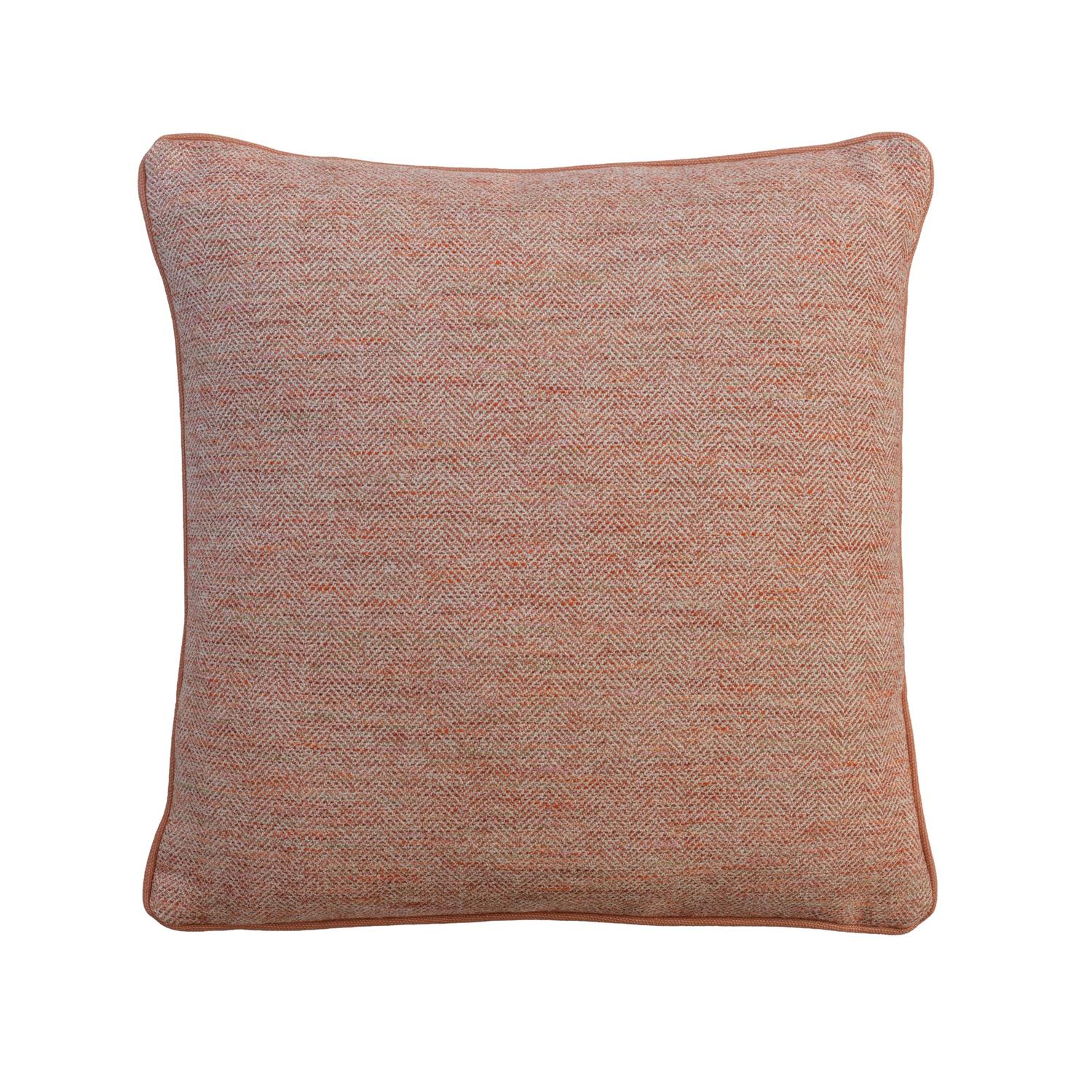A cushion in Delphini Amaretti, a thick and slubby weave with a subtle herringbone in a warm amaretti-inspired mix of terracotta, burnt orange, and soft beige. Delphini Amaretti, Sustainable Feather, Cushion, 55cm x 55cm - Andrew Martin Cotton Blend Herringbone & Plain & Weave