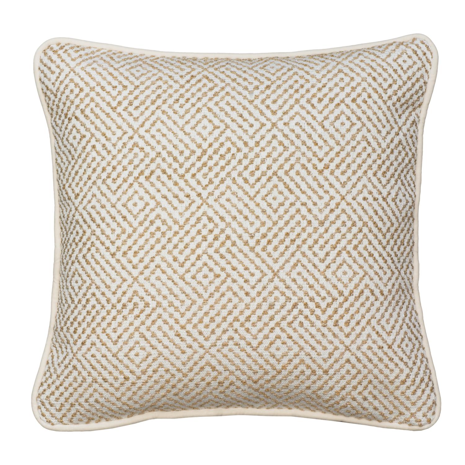 A luxurious cushion made from almond Driftwood Hessian, a rustic boucle pile which forms a smart geometric/herringbone patter on a lovely natural ground. Driftwood Hessian, 50/50% Wool And Feather Mix, Cushion, 55cm x 55cm - Andrew Martin Woolkeepers Eco-conscious & Wool & Feather Filling & Cotton Blend