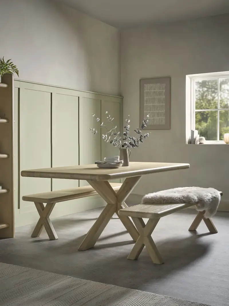 Crafted in solid white oak, our Edvin range is an impressive collection of timeless furniture with bold outlines and strong design features such as the statement crossed table legs. The range includes a comprehensive set of pieces suited to living room, dining room or kitchen. The Edvin Dining Table is a roomy piece that will take centre stage at major celebrations as well as being the hub of family life every other day of the year. Pair with a couple of the Edvin Benches for a relaxed farmhouse kitchen style.