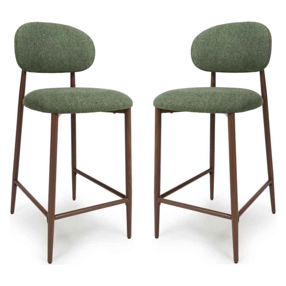 Eldoro Green Fabric Bar Chairs With Brown Legs In Pair