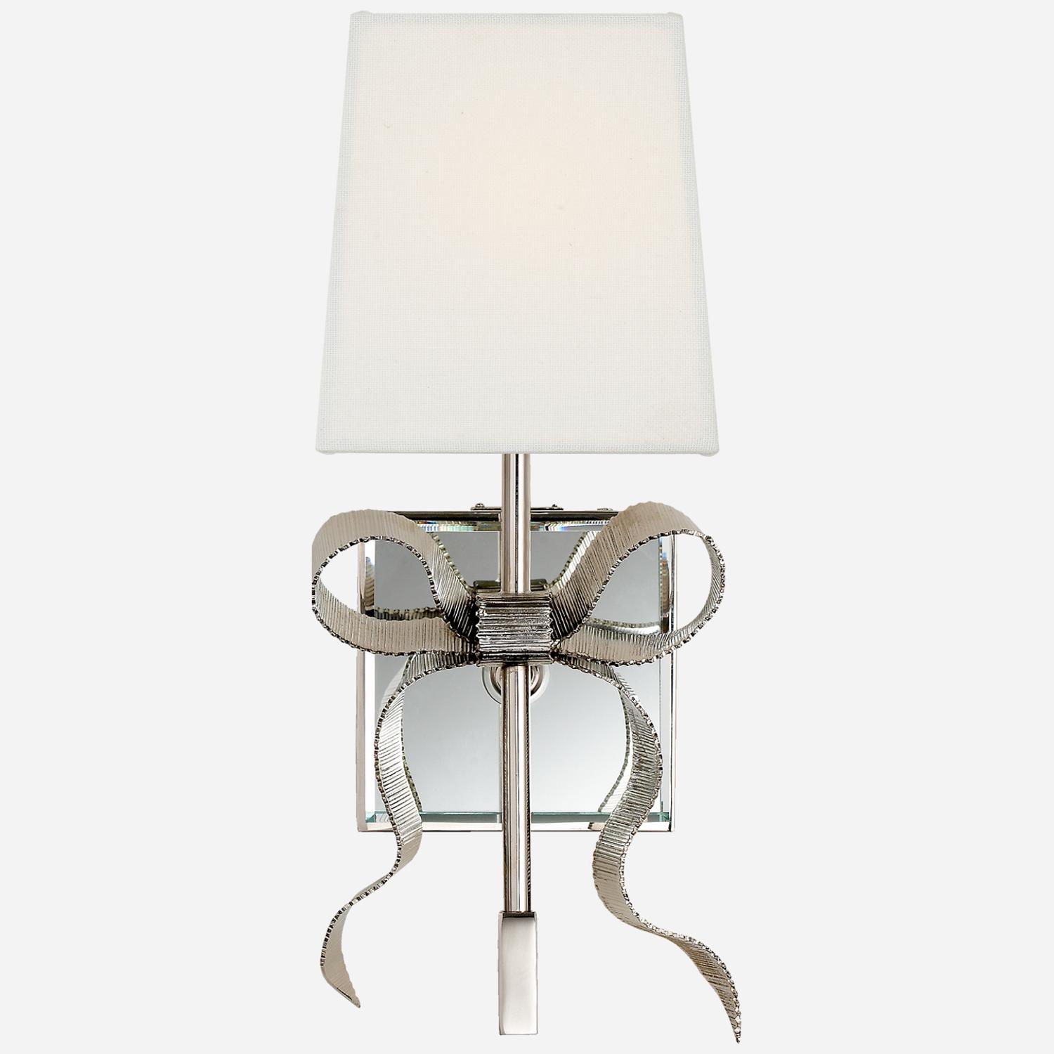 Evoking a sense of fun, Ellery is a wall light adorned with the signature Kate Spade New York bow, a perfect addition to any room that requires a little feminine touch. Ellery Wall Light Nickel, Wall Light, Polished Nickel - Andrew Martin