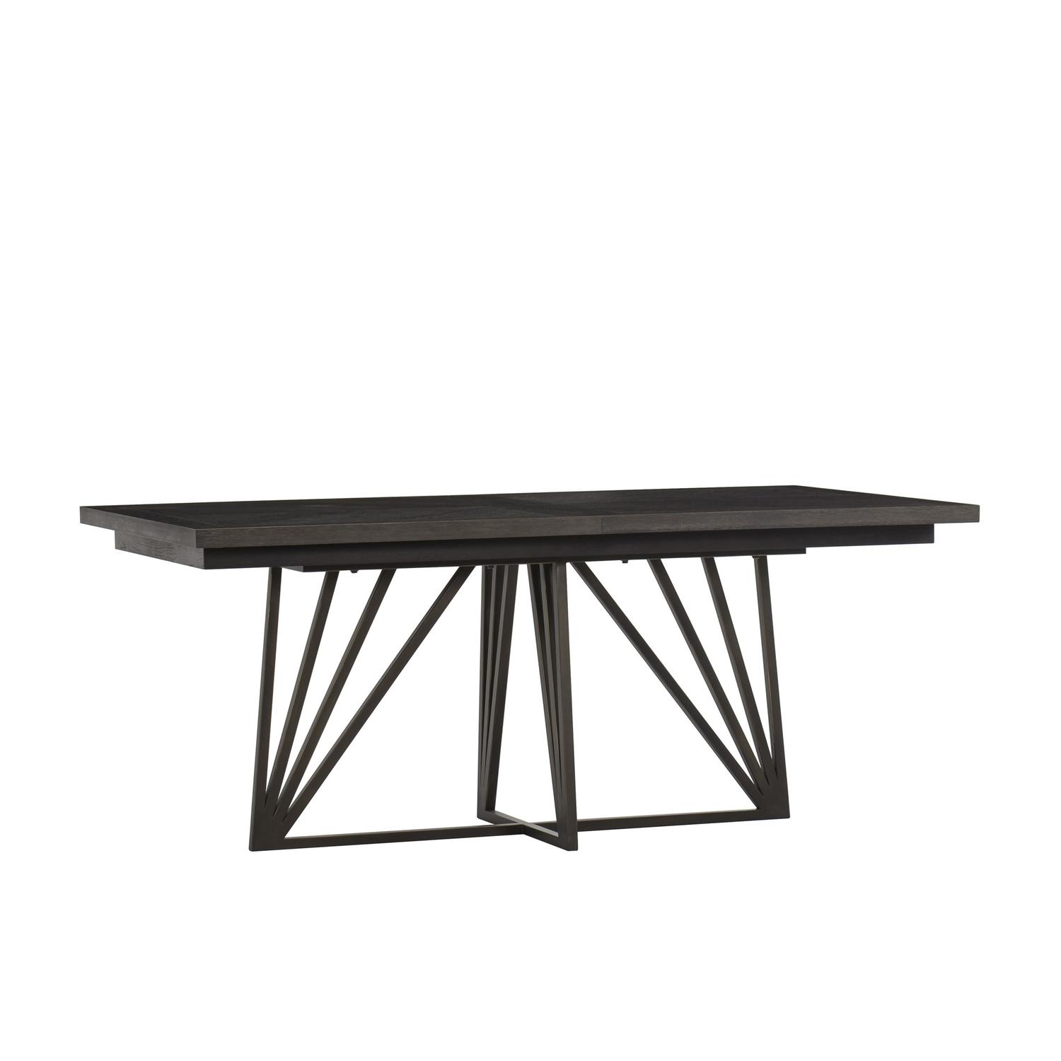 Modern eight to ten seater dining table with rectangular extendable top in dark wood with an art deco inspired bronze base. Emerson Extending Dining Table, Extending Dining Table - Andrew Martin