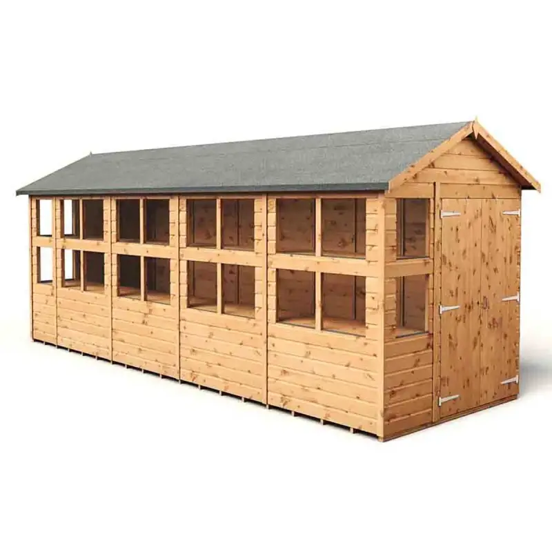 Empire Sheds Empire Apex Potting Shed 6x18ft Double Door Wooden Garden Shed Double Door Windows Brown