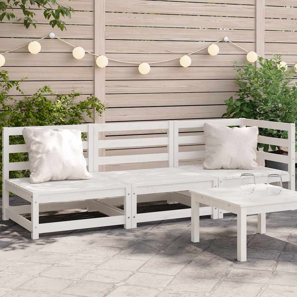 Elevate your outdoor living with the Furniture in Fashion Etreno Outdoor Solid Wood Lounge Set in White, a perfect combination of modern elegance and durable craftsmanship. Designed to brighten up gardens, patios, and terraces, this lounge set features a clean white finish that adds a fresh and contemporary touch to any outdoor setting while creating a welcoming space for relaxation and social gatherings. Crafted from high-quality solid pine wood, this lounge set ensures excellent stability and long-lasting performance in outdoor environments. The smooth, painted white finish enhances its visual appeal while offering added protection against weather exposure. Inspired by modular garden sofa designs, it allows flexible configurations, making it easy to adapt the layout according to your space and seating needs. The Furniture in Fashion Etreno Outdoor Solid Wood Lounge Set in White offers a perfect balance of durability, comfort, and modern outdoor style. Its sturdy construction and flexible design make it a practical and elegant addition to any outdoor living space. FEATURES: Material: Solid Pine Wood (untreated) Finish: White Set Include: 1 x Corner sofa, 2 x Armless sofa This 3-seater wooden garden sofa will make a great addition to your garden, terrace, or patio for chatting with family and friends or just enjoying the weather Solid pine wood is a beautiful natural material Pine wood has a straight grain, and the knots give the material its signature, rustic look Made of solid pine wood, the outdoor sofa is durable and stable The backrest adds extra seating comfort for the garden seating The slatted design of the pallet sofa effectively prevents water from pooling, ensuring that the seat remains dry and free from potential rot The wooden garden sofa features a modular design, making it completely flexible and easy to move around to suit any setting You can combine it with other modular segments available in the drop-down menu to create your o