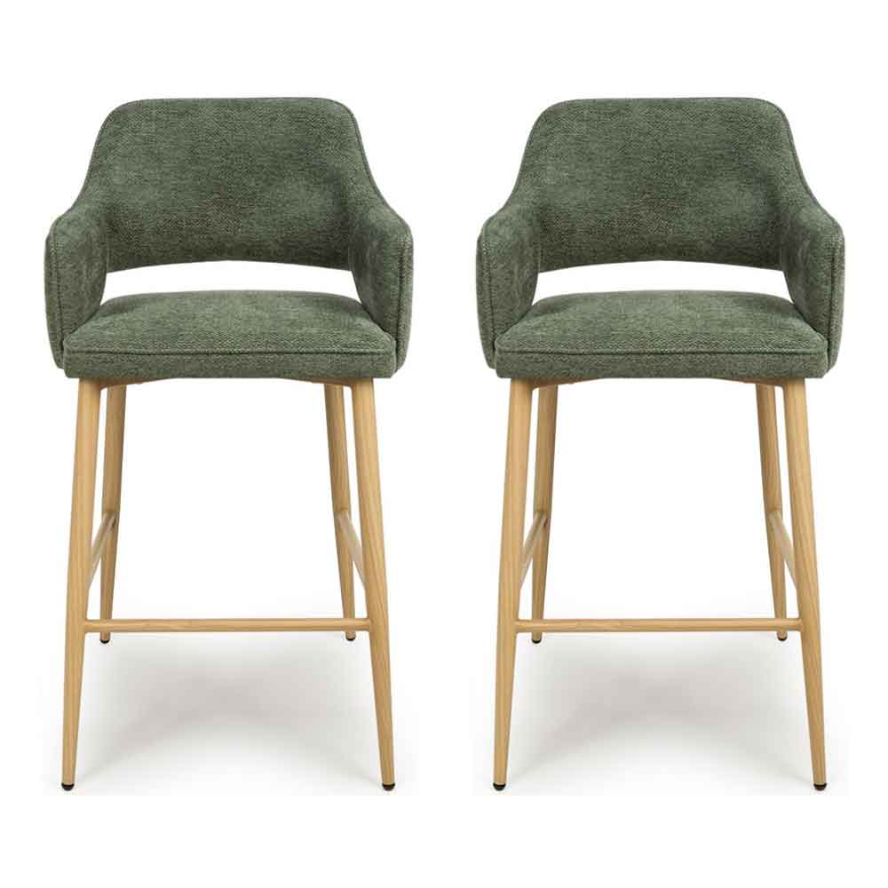 Eureka Green Fabric Bar Chairs With Oak Legs In Pair
