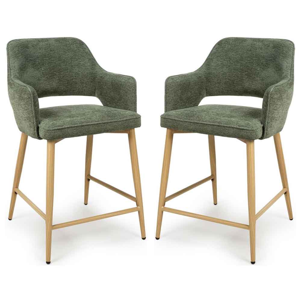 Eureka Green Fabric Counter Bar Chairs With Oak Legs In Pair