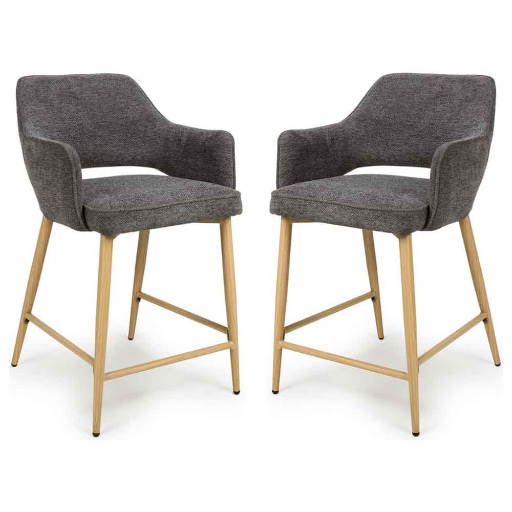 Eureka Grey Fabric Counter Bar Chairs With Oak Legs In Pair