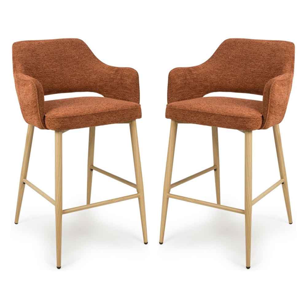 Eureka Rust Fabric Bar Chairs With Oak Legs In Pair