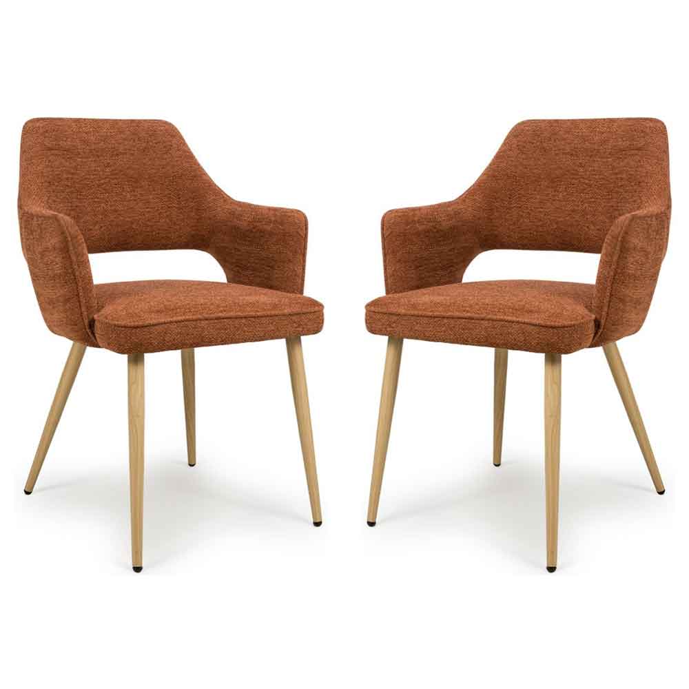 Eureka Rust Fabric Dining Chairs With Oak Legs In Pair