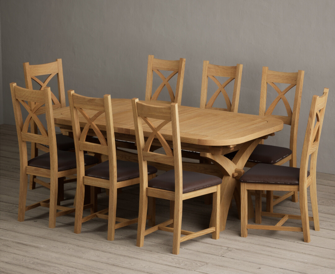 Extending Olympia 180cm Solid Oak Dining Table With 6 Brown Natural Solid Oak Chairs