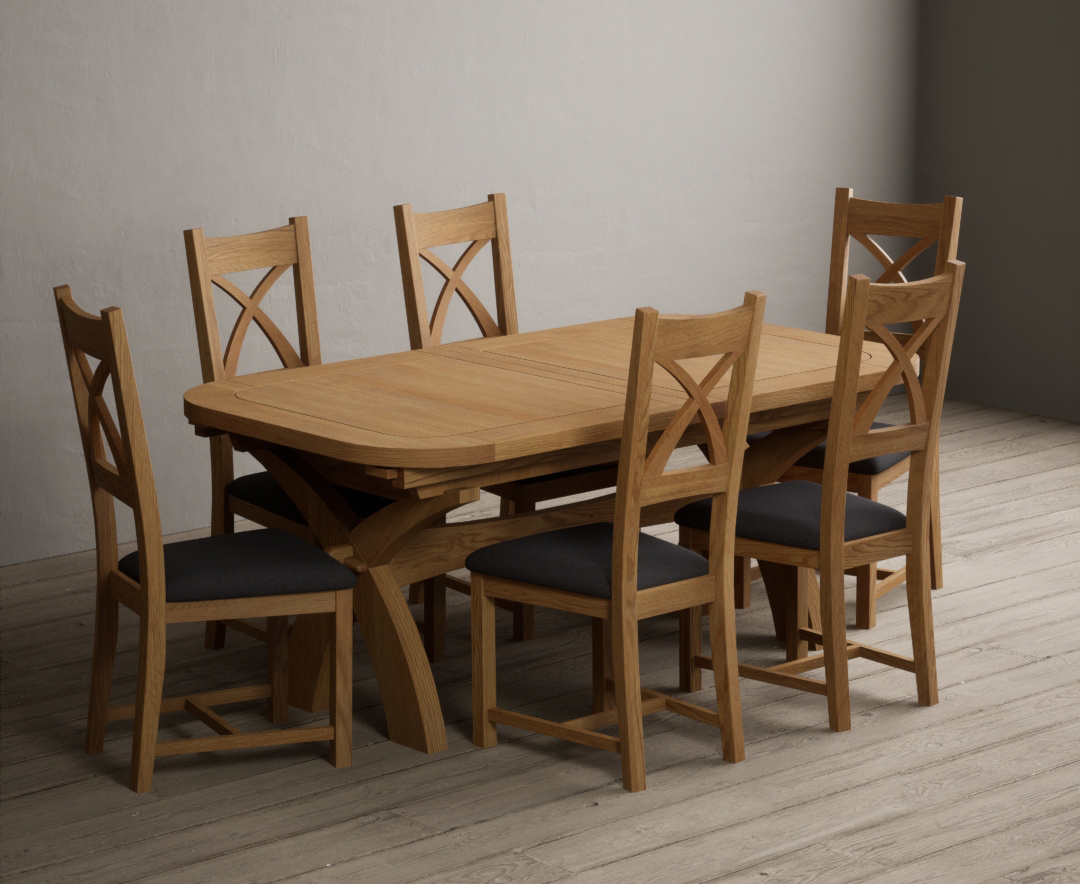 Extending Olympia 180cm Solid Oak Dining Table With 6 Charcoal Grey Natural Solid Oak Chairs