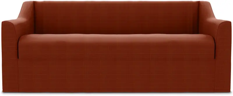 This style includes 1 piece and it’s designed to only fit the IKEA Färlöv 2 seater sofa. This model features one cover for the entire sofa, including the sofa frame and seat cushion / bench cushion. The cover envelopes the seat cushion, the fabric is tucked around the seat cushion and fastened along the backrest frame and armrests with velcro for a neat finish. The backrest features extra padding for added comfort. This look is designed for a pared back minimalist look, covers for the backrest and lumbar cushions are not included for this style. Fitting instructions: Remove the original covers along with the backrest and lumbar cushions, the seat / bench cushion can remain on the sofa. Drape the cover along the backrest and over the armrests. Gently pull the cover over the sofa frame. The cover is designed for the perfect neat fit, so adjust both sides of the backrest and armrests simultaneously. Adjust the seams of the cover so that they are aligned with the armrests and along the centre of the backrest. Smooth the backrest padding to avoid any bulking and to ensure that it lies flat against the back of the sofa. To secure the seat cushion, lift the seat cushion slightly, wrap and tuck the fabric around the back and sides of the seat cushion - creating an envelope or pocket for the seat cushion. The seams of the seat cover section align with the corners of the seat cushion. Velcro is attached to the sofa frame to keep the seat cushion and fabric in place. The cover is designed to skim the floor, adjust accordingly to avoid the fabric bunching and for a smooth, neat fitting look. The fabric should be completely smooth when properly attached.