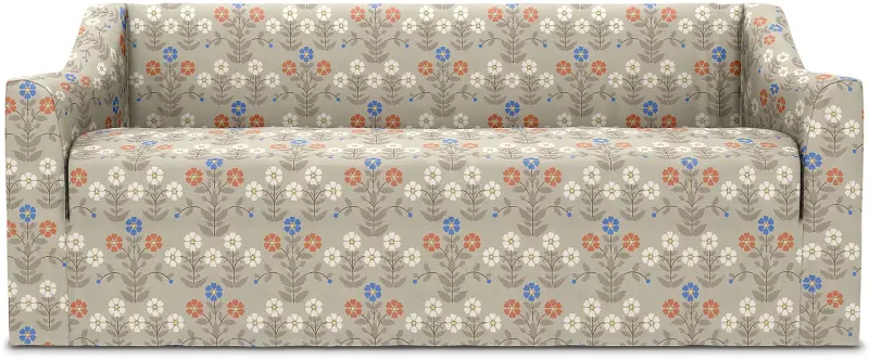 This style includes 1 piece and it’s designed to only fit the IKEA Färlöv 2 seater sofa. This model features one cover for the entire sofa, including the sofa frame and seat cushion / bench cushion. The cover envelopes the seat cushion, the fabric is tucked around the seat cushion and fastened along the backrest frame and armrests with velcro for a neat finish. The backrest features extra padding for added comfort. This look is designed for a pared back minimalist look, covers for the backrest and lumbar cushions are not included for this style. Fitting instructions: Remove the original covers along with the backrest and lumbar cushions, the seat / bench cushion can remain on the sofa. Drape the cover along the backrest and over the armrests. Gently pull the cover over the sofa frame. The cover is designed for the perfect neat fit, so adjust both sides of the backrest and armrests simultaneously. Adjust the seams of the cover so that they are aligned with the armrests and along the centre of the backrest. Smooth the backrest padding to avoid any bulking and to ensure that it lies flat against the back of the sofa. To secure the seat cushion, lift the seat cushion slightly, wrap and tuck the fabric around the back and sides of the seat cushion - creating an envelope or pocket for the seat cushion. The seams of the seat cover section align with the corners of the seat cushion. Velcro is attached to the sofa frame to keep the seat cushion and fabric in place. The cover is designed to skim the floor, adjust accordingly to avoid the fabric bunching and for a smooth, neat fitting look. The fabric should be completely smooth when properly attached.