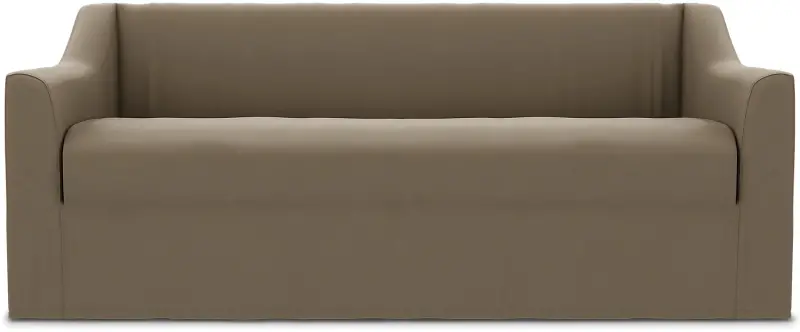 This style includes 1 piece and it’s designed to only fit the IKEA Färlöv 2 seater sofa. This model features one cover for the entire sofa, including the sofa frame and seat cushion / bench cushion. The cover envelopes the seat cushion, the fabric is tucked around the seat cushion and fastened along the backrest frame and armrests with velcro for a neat finish. The backrest features extra padding for added comfort. This look is designed for a pared back minimalist look, covers for the backrest and lumbar cushions are not included for this style. Fitting instructions: Remove the original covers along with the backrest and lumbar cushions, the seat / bench cushion can remain on the sofa. Drape the cover along the backrest and over the armrests. Gently pull the cover over the sofa frame. The cover is designed for the perfect neat fit, so adjust both sides of the backrest and armrests simultaneously. Adjust the seams of the cover so that they are aligned with the armrests and along the centre of the backrest. Smooth the backrest padding to avoid any bulking and to ensure that it lies flat against the back of the sofa. To secure the seat cushion, lift the seat cushion slightly, wrap and tuck the fabric around the back and sides of the seat cushion - creating an envelope or pocket for the seat cushion. The seams of the seat cover section align with the corners of the seat cushion. Velcro is attached to the sofa frame to keep the seat cushion and fabric in place. The cover is designed to skim the floor, adjust accordingly to avoid the fabric bunching and for a smooth, neat fitting look. The fabric should be completely smooth when properly attached.