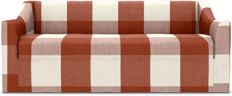 This style includes 1 piece and it’s designed to only fit the IKEA Färlöv 2 seater sofa. This model features one cover for the entire sofa, including the sofa frame and seat cushion / bench cushion. The cover envelopes the seat cushion, the fabric is tucked around the seat cushion and fastened along the backrest frame and armrests with velcro for a neat finish. The backrest features extra padding for added comfort. This look is designed for a pared back minimalist look, covers for the backrest and lumbar cushions are not included for this style. Fitting instructions: Remove the original covers along with the backrest and lumbar cushions, the seat / bench cushion can remain on the sofa. Drape the cover along the backrest and over the armrests. Gently pull the cover over the sofa frame. The cover is designed for the perfect neat fit, so adjust both sides of the backrest and armrests simultaneously. Adjust the seams of the cover so that they are aligned with the armrests and along the centre of the backrest. Smooth the backrest padding to avoid any bulking and to ensure that it lies flat against the back of the sofa. To secure the seat cushion, lift the seat cushion slightly, wrap and tuck the fabric around the back and sides of the seat cushion - creating an envelope or pocket for the seat cushion. The seams of the seat cover section align with the corners of the seat cushion. Velcro is attached to the sofa frame to keep the seat cushion and fabric in place. The cover is designed to skim the floor, adjust accordingly to avoid the fabric bunching and for a smooth, neat fitting look. The fabric should be completely smooth when properly attached.