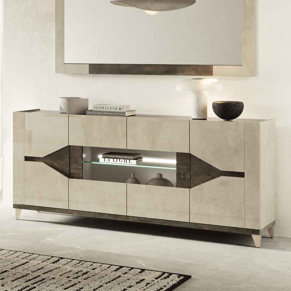 Fabio High Gloss Sideboard With 4 Doors In Warm Grey Marble Effect And Led