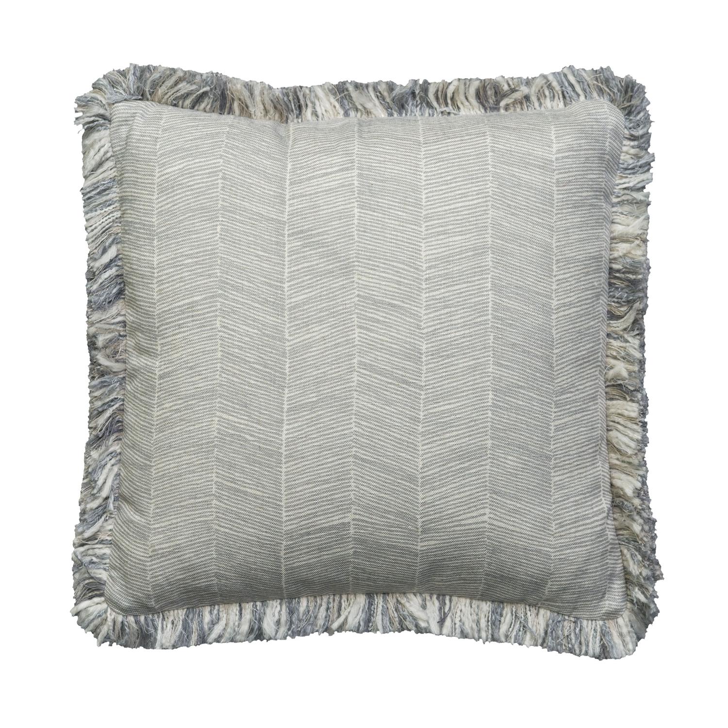 Fasano Storm Mattinata Sustainable Feather Cushion - Andrew Martin Sophie Paterson Eco-conscious With Trim Fringe Linen Blend Herringbone