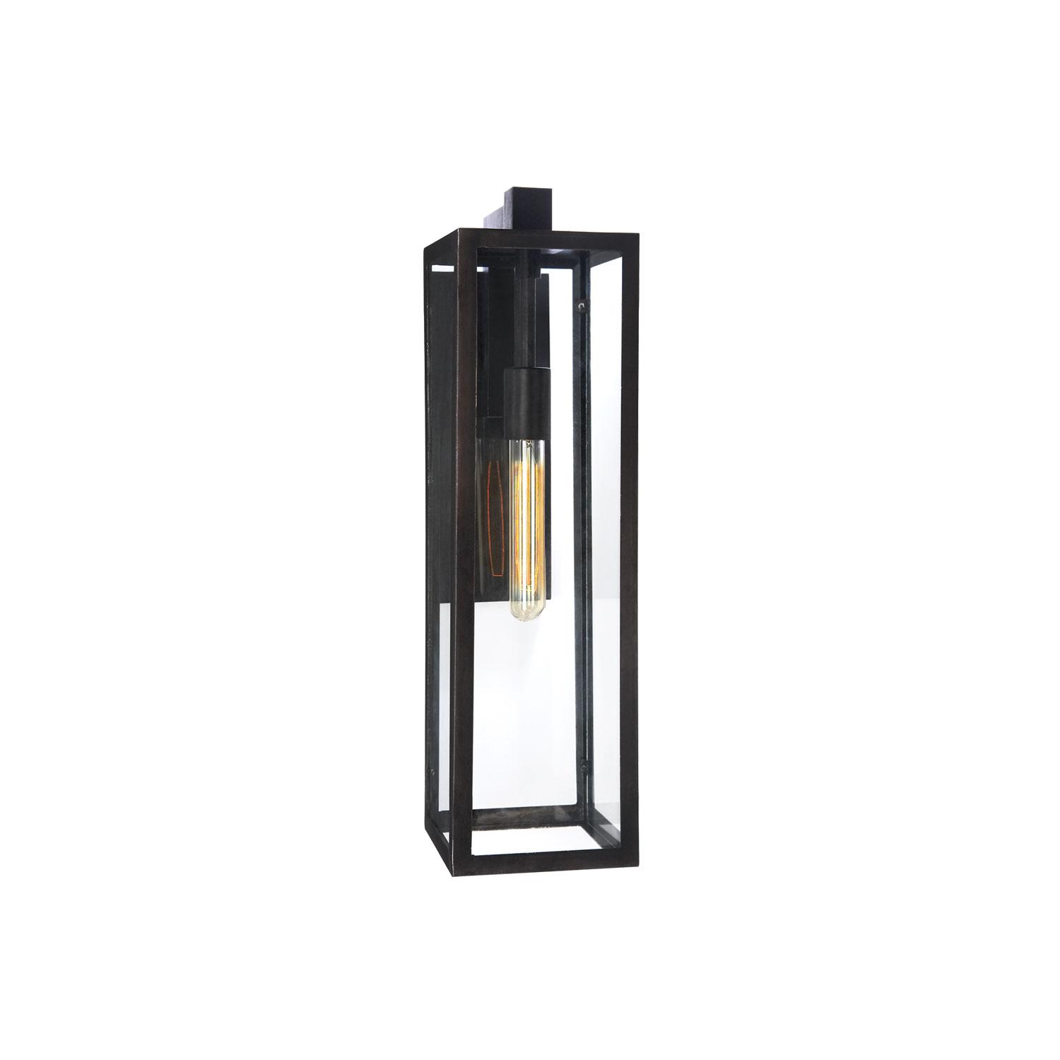 A smart, masculine wall lantern with an aged iron and glass casing. Designed by lighting icon E.F. Chapman, Fresno shows slick, boxy lines perfect for contemporary spaces. Available in four sizes,can be used outside. Fresno Wall Light Iron, Wall Light, Large - Andrew Martin