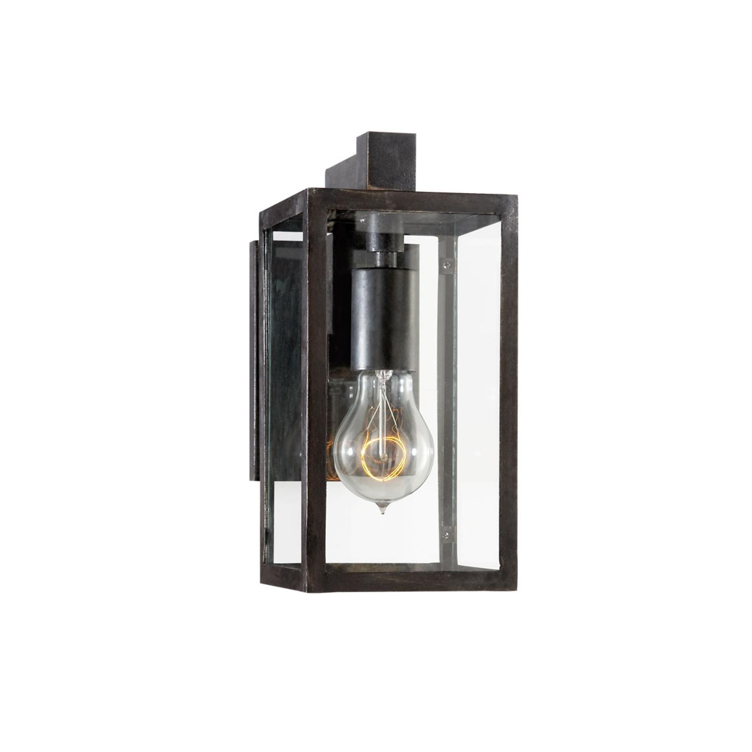 Smart, wall light with an aged iron and glass casing. Designed by lighting icon E.F. Chapman, with slick, boxy lines perfect for contemporary interiors. Fresno Wall Light, Wall Light, Small, Black - Andrew Martin